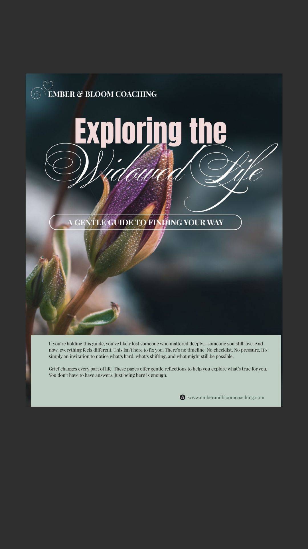 This guide walks you through areas where grief often shows up in widowed life... including identity, daily rhythms, relationships, and emotional survival. This is something you can read in under an hour and return to anytime.